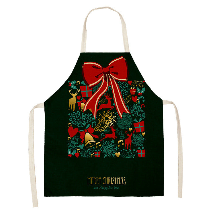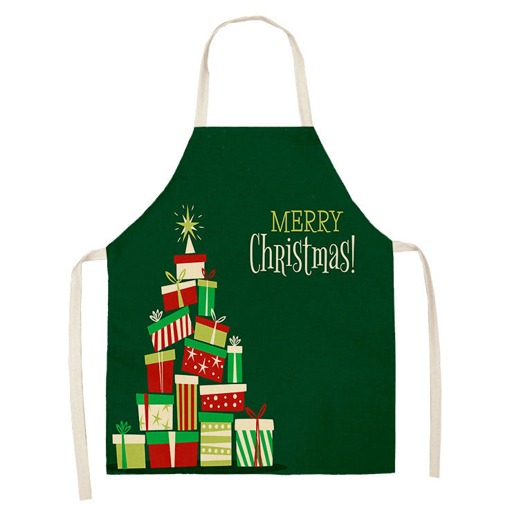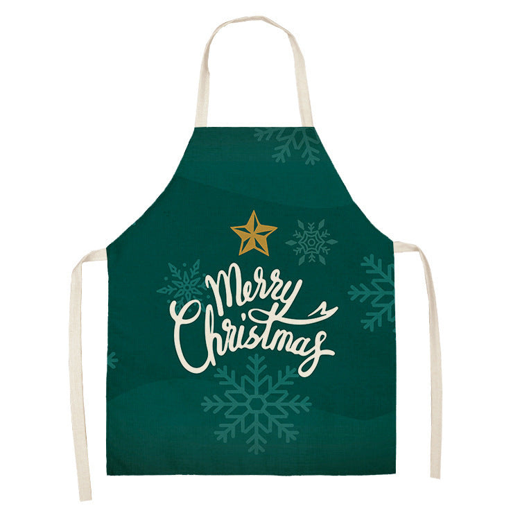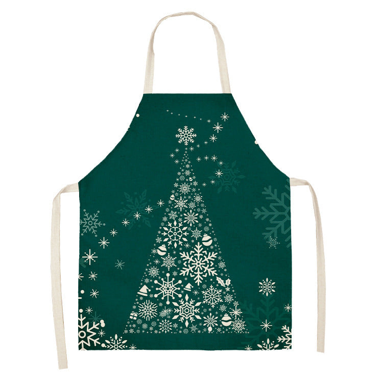 Household Green Series Christmas Dog Linen Apron Used In Kitchen